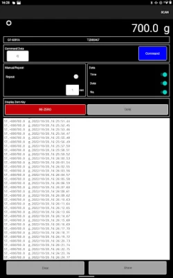 A&D WeiV establishes wireless connection (Bluetooth) between an A&D weighing instrument (electronic balance/scale) and a smartphone/tablet computer, and thereby enables control of the weighing instrument and reception/storage of weighing data.