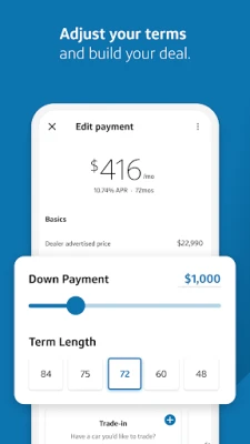 Adjust things like down payment and term length to build a deal that’s right for you. You can even compare monthly payments side by side to narrow down the best option for you.