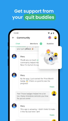 💬 Community: the ex-smokers' chat: When you quit smoking, it’s important to stay in non-smoking environments. QuitNow provides a chat filled with people who, like you, have bid farewell to tobacco. Surrounding yourself with non-smokers will make your journey smoother.