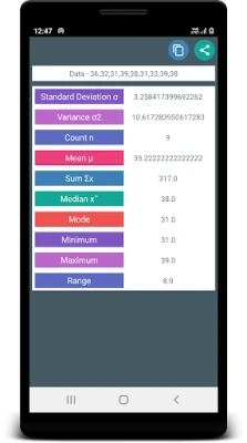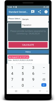 Enter a data set, separated by commas . Click Calculate to find standard deviation, variance, count of data points n, mean and more
